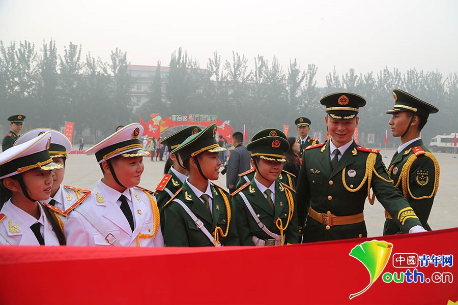 参加活动的礼炮部队官兵和少年军校学员合影留念。 中国青年网通讯员 尹博 摄