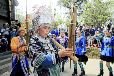 日前,贵州省榕江县忠诚镇孖龙新寨的水族同胞身着节日盛装,载歌载舞欢度端节。据悉,水族端节是水族最悠久、最隆重的传统节日。