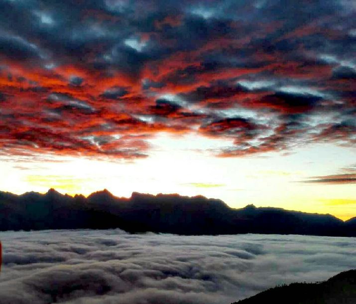 达瓦更扎“达瓦更扎”为嘉绒藏语,意为“美丽的神山”。它坐落于四川省宝兴县硗碛藏族乡嘎日村境内。海拔约3900米,面积近200平方公里,属于邛崃山脉,地势北高南低,在四川省雅安市、甘孜州以及阿坝州的交界处。14年10月,宝兴县嘎日村为帮助当地藏民发展牧业修建的一条24公里的“通天路”建成通车。该路尽头地势陡险,视野开阔,既可环顾北面的四姑娘山、南面的帕格拉神山、西面的贡嘎群峰等名山,也可观赏云瀑、草甸、森林、湖泊、峡谷、藏寨等各类景观。