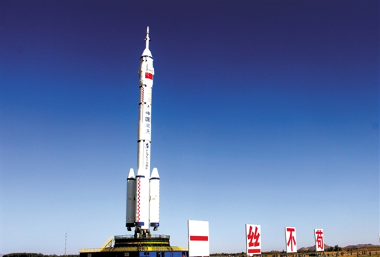 搭载“神十一”的运载火箭10月10日上午垂直转运至发射塔 李国辉 摄