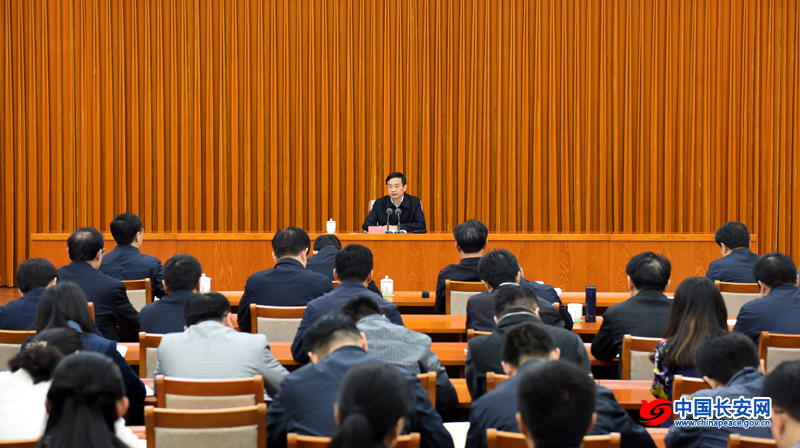 中央政法委副秘书长、中央综治办主任陈训秋,中央政法委副秘书长姜伟、徐显明、王双全,机关和直属单位全体党员干部参加会议。