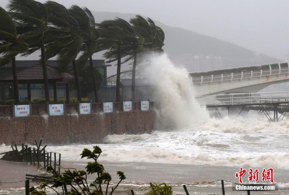 10月18日,今年第21号台风“莎莉嘉”在海南登陆,登陆时强度为强台风级(14级)。登陆后的“莎莉嘉”在三亚掀起巨浪。中新社记者 尹海明 摄