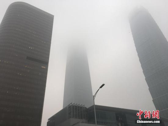 10月19日消息,昨天16时,北京市气象台发布霾黄色预警信号,预计昨日傍晚至19日北京大部地区有中度霾,南部地区有重度霾。图为国贸附近被雾霾笼罩,能见度降低。富田 摄