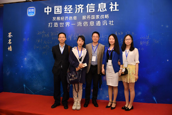 图为2016年中国经济信息社挂牌,记者和国资委、央企嘉宾合影(右二)