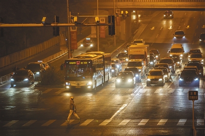 10月18日,广渠路,受不利气象条件的影响,北京出现重度及以上污染状况。市民戴上口罩出行。新京报记者 彭子洋 摄