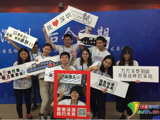 结营仪式现场,学员们拍照向深圳“表白”。中国青年网通讯员 韩非吾摄。