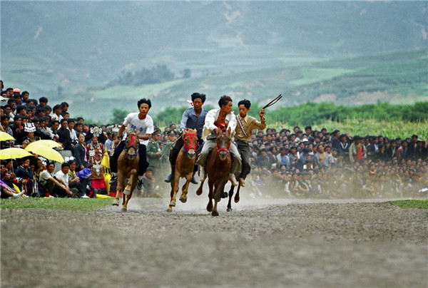 每到“火把节”时,彝族儿女便身着盛装跳舞、唱歌、赛马、摔跤,尽情嬉戏。