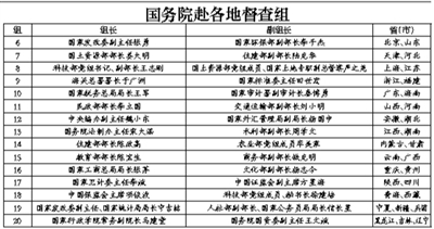其中,国土资源部部长姜大明最“资深”,他参加了国务院的全部三次督查并都担任组长。2014年他带领第五督查组完成对江苏、浙江和上海的督查;2015年担任第八督查组组长到东三省进行督查;今年则担任第七督查组组长,负责督查天津和河北。海关总署署长于广洲、国家税务总局局长王军均连续两年担任督查组组长。而其他12名组长则是首次带队赴地方一线督查。