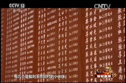 博物馆墙上的名字都是在战争中牺牲的红军烈士,有几个是当年和红四方面军30军战士刘玉贵同村的小伙伴,他们牺牲于1935年的一场战役,史上称做强渡嘉陵江。对刘玉贵老人来说,嘉陵江战役是一生中最难忘的回忆。