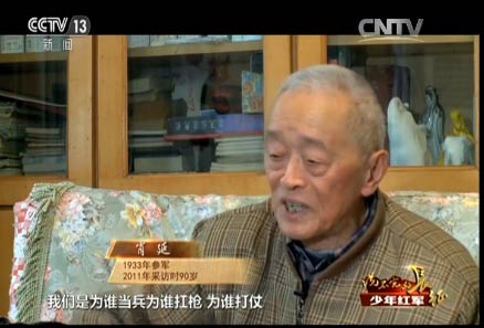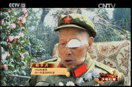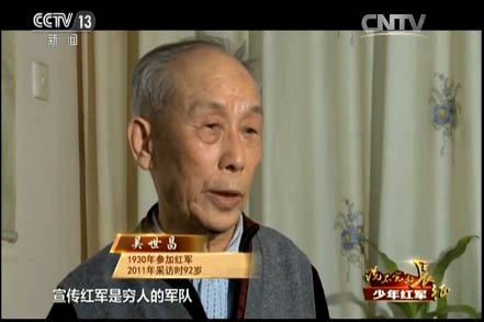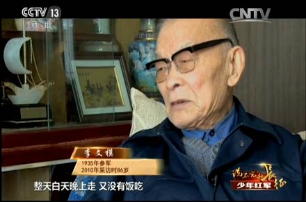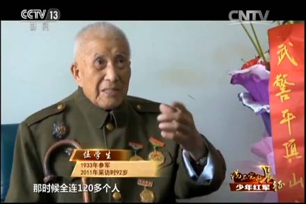 王述文的参军之路就没有那么顺利了。他八岁参加儿童团,拿着红缨枪站岗放哨,跟着自卫队打土豪、分田地,1933年,红军到了王述文的家乡,四川巴中,这一年他九岁。他决定参加红军,可没成想,人家嫌他小,不要。当时王述文觉得只有参加红军才有出路,所以就哭、闹。面对这个又哭又闹的孩子,红军没有办法,只能暂时让他跟着部队。有一天走了120里路,到晚上点名,点到最后连长也没点王述文的名字,王述文就“哼”地一声,连长这次叫了他的名字。