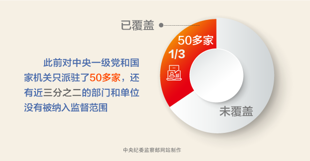 此前对中央一级党和国家机关只派驻了50多家,还有近三分之二部门和单位没有被纳入监督范围,党内监督存在空白。