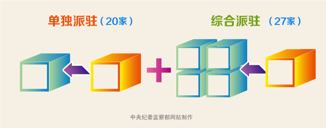 在47家派驻机构中,20家为单独派驻,27家为综合派驻,综合派驻约占派驻机构总数60%,负责监督119家单位。综合派驻改变了“点对点”的单一模式,让纪检组“驻在一家、管多家事”,解决监督抹不开面子的问题。实行综合派驻的纪检组监督单位多、工作任务重,必须把有限的力量集中起来、攥成拳头,这样才能形成战斗力。