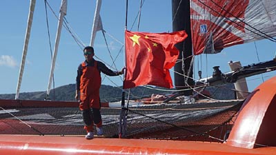 郭川航行岸上团队26日传来不幸消息:正在单人驾驶帆船穿越太平洋的中国职业帆船选手郭川在航行至夏威夷附近海域时,于北京时间25日下午三点之后与岸上团队失去联系。靠近三体船航行海域的夏威夷火奴鲁鲁(檀香山)当地海事救援机构派出搜救飞机,发现了帆船,但甲板上无人。郭川驾驶帆船于北京时间10月19日5时24分11秒从旧金山金门大桥出发,以上海金山为目的地,进行单人不间断跨太平洋创纪录航行。图为10月18日,在美国旧金山湾,郭川在他的三体帆船上。