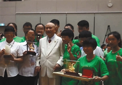 2015年夏令特会上,来自大陆的青少年信徒为左坤献上黄金等礼物。