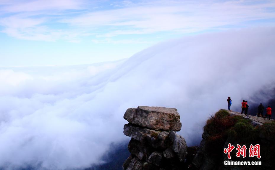 11月1日,世界名山江西庐山剪刀峡景点出现壮观的云海景观,吸引了大批游客和摄影爱好者前往观看。 吴健 摄
