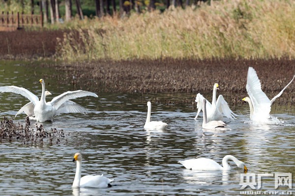 央广网山西太原11月1日消息(记者岳旭辉 山西台记者郑云 运城台记者张强)初冬时节,成千上万只白天鹅从遥远的西伯利亚准时飞抵山西省平陆黄河三湾湿地,回“娘家”越冬栖息,它们在水中觅食,在岸边梳理羽毛,鸣叫声此起彼伏。