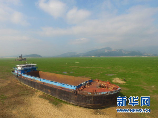 一艘大船搁浅在鄱阳湖庐山市区域(11月2日摄)。 新华社记者 胡晨欢摄