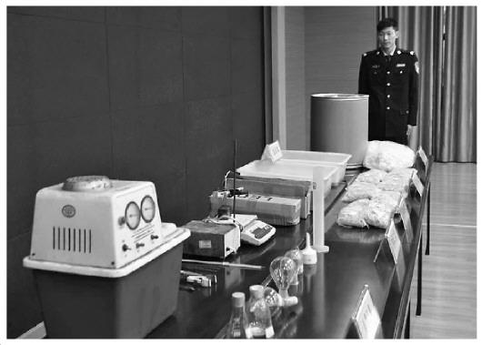 图为黄冈警方展示缴获的部分毒品及制毒工具。 张瑜 摄