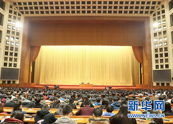 11月4日,中央宣传部、中央直属机关工委、中央国家机关工委、教育部、中央军委政治工作部、中共北京市委在北京人民大会堂举办学习贯彻党的十八届六中全会精神中央宣讲团首场报告会。新华社记者 陈建力 摄