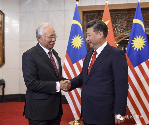 2016年11月3日,国家主席习近平在北京钓鱼台国宾馆会见马来西亚总理纳吉布。新华社记者李学仁 摄