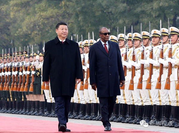 2016年11月2日,国家主席习近平在北京人民大会堂同几内亚总统孔戴举行会谈。这是会谈前,习近平在人民大会堂东门外广场为孔戴举行欢迎仪式。新华社记者丁林 摄