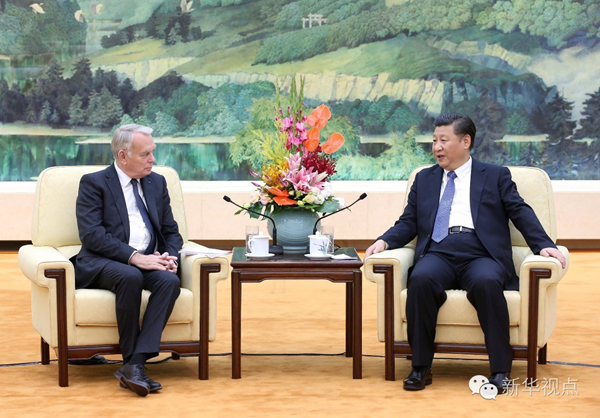 2016年10月31日,国家主席习近平在北京人民大会堂会见法国外长艾罗。新华社记者庞兴雷 摄