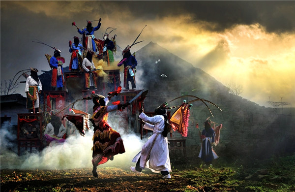 古镇居民表演傩戏