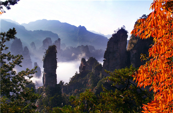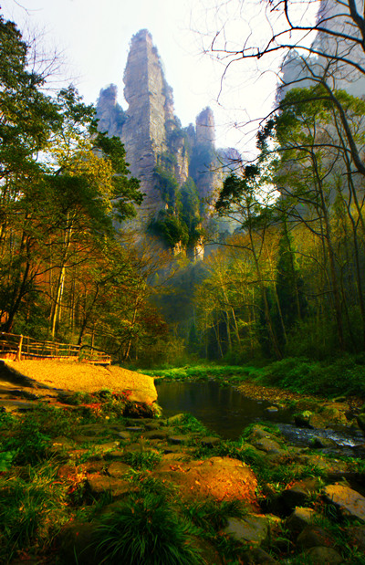 张家界国家森林公园位于湖南省西北部张家界市境内,园内山峦叠嶂、峻峰奇石遍布,拥有举世罕见的砂岩峰林景观,先后被列入世界自然遗产及世界地质公园。