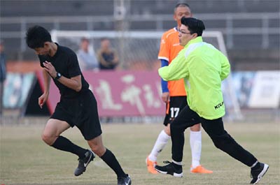 以传承足球文化、传递足球正能量、重温足球经典为主题的老甲A足球邀请赛原本是一群老足球人难得聚会的舞台,然而在6日,第5届老甲A联赛第4比赛日四川与湖北队比赛临近尾声的时候,出现了一名随队人员不满裁判判罚,冲入场内追逐当值裁判讨说法的一幕。不过,该随队人员并没有接触到裁判身体,他也很快被湖北队相关人员拦住,没有发生更大的冲突事件。
