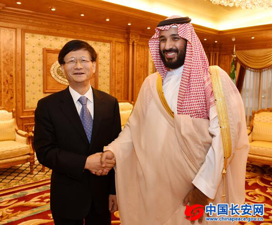 11月6日,习近平主席特使、中共中央政治局委员、中央政法委书记孟建柱在利雅得会见沙特王储兼副首相、内政大臣穆罕默德。