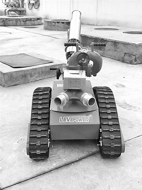 用于消防作业的消防机器人,喷水量是每秒40升。 本报记者 姜天骄摄