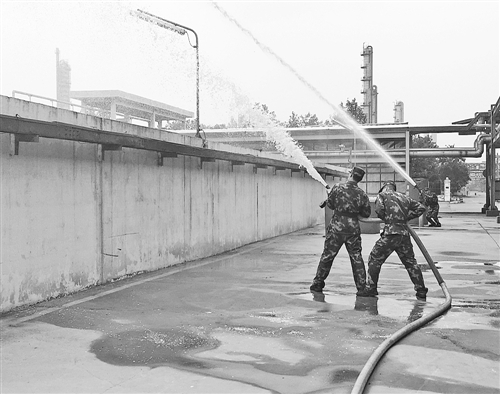 德州支队消防员在华路恒生化工股份有限公司进行消防演练。