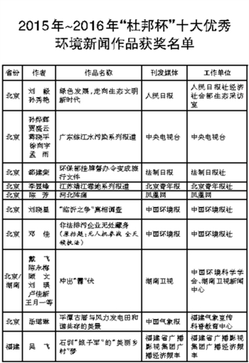 2015-2016年“杜邦杯”环境好新闻作品揭晓