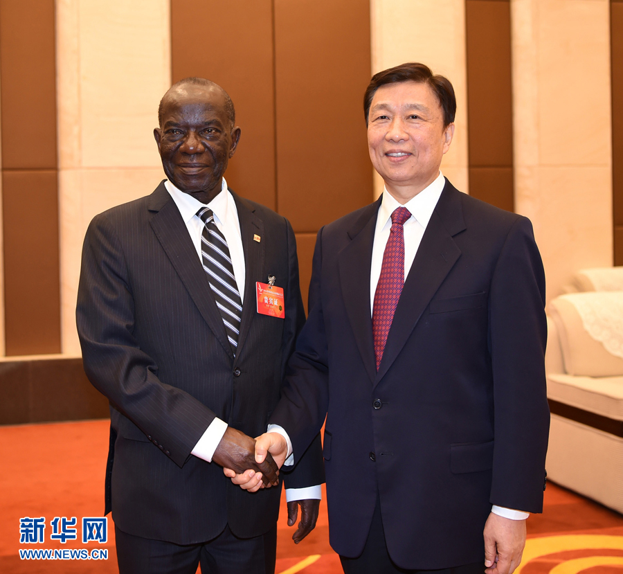 11月10日,中共中央政治局委员、国家副主席李源潮在重庆会见乌干达副总统爱德华·塞坎迪。 新华社记者 唐奕 摄