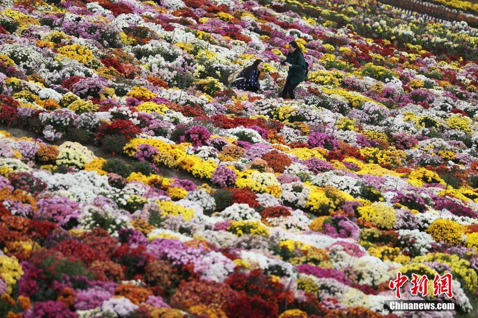 11月9日,市民在南京农业大学菊花基地欣赏各品种菊花。正值江南深秋,位于南京江宁湖熟的南京农业大学菊花基地内的3000余个品种的菊花竞相开放,吸引了众多市民和游客前来踏秋赏花。中新社记者 泱波 摄