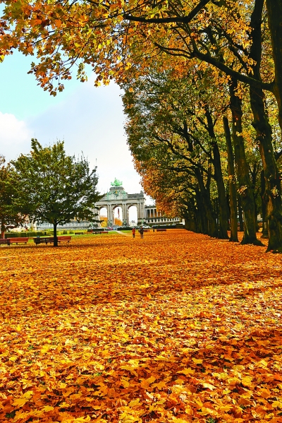 11月初,布鲁塞尔几场细雨过后,树叶随秋风飘然而落,为大地铺上一层金黄色的地毯。图为布鲁塞尔50年宫的晚秋景色。1880年,为庆祝比利时王国独立50周年,国王雷奥伯德在布鲁塞尔南郊修建了50年宫。50年宫现被辟为汽车博物馆、军事博物馆和皇家历史与艺术博物馆。 本报驻布鲁塞尔记者 刘军摄/光明图片