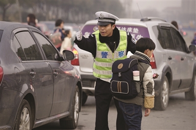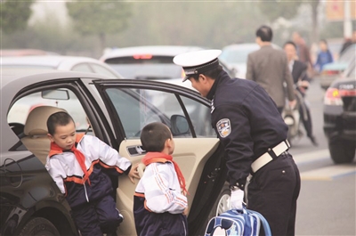 高飞说,部队转业的交警陆旭东腿脚快、嗓门大,见到低年级家长停车,他立马上开门,把孩子抱下车帮忙背上书包,牵手送到门口,家长不用下车,停留时间从3分钟一下缩短到十几秒,校门口的交通状况大为改观。