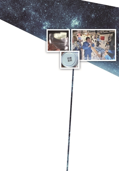 上图:航天员中心的太空冰淇淋。下图:景海鹏在太空过50岁生日吃的罐头装奶酪蛋糕。