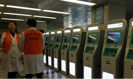 ▲即便是暑热难耐,人们还是习惯到挂号窗口排起长队,哪怕身边就有醒目的“自动挂号不排队”的提示(6月6日拍摄);本来是提供方便的自主挂号机却遭遇“寒流”,无人理会(11月2日拍摄)。