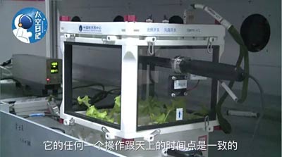 【王隆基解说:虽然太空是失重环境,但是因为植物有趋光性,所以它依然是朝上长;同时植物还具有趋水、趋肥性,它的根部就会朝着富有水分和养分的基质生长。】