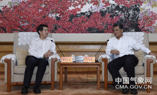 11月14日,中国气象局党组书记、局长郑国光在深圳会见广东省委副书记、深圳市委书记马兴瑞。杨俊坡 摄影