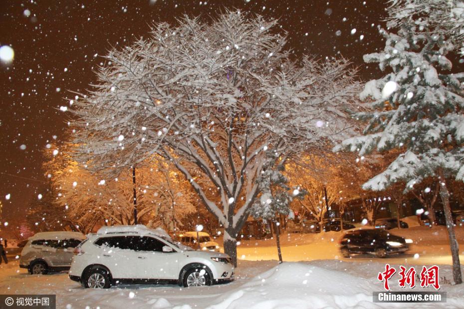新疆阿勒泰迎大雪天气 街头车辆被雪埋