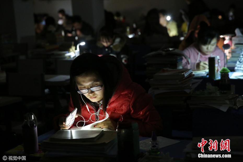 安徽一校园临时停电 考研学生用手机照明坚持复习