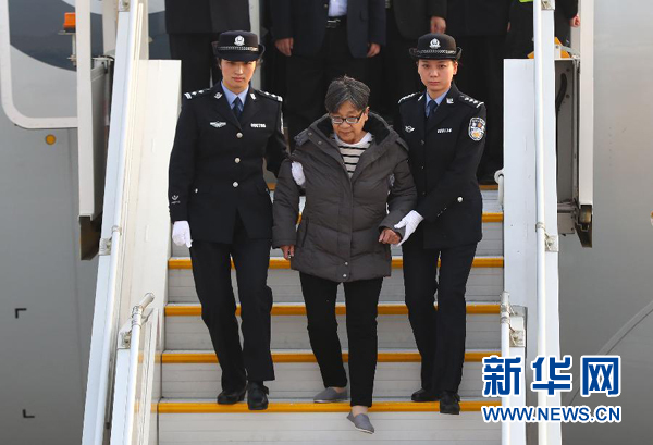 11月16日,在北京首都机场,“百名红通人员”头号嫌犯杨秀珠走下飞机回国自首。当日,在中央反腐败协调小组国际追逃追赃工作办公室的统筹协调下,经中央有关部门和浙江省追逃办密切协作,潜逃海外13年之久的“百名红通人员”头号嫌犯杨秀珠回国投案自首。这是第37名归案的“百名红通人员”。新华社记者 殷刚 摄