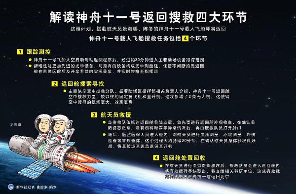 图表:解读神舟十一号返回搜救四大环节 新华社记者 曲振东 编制