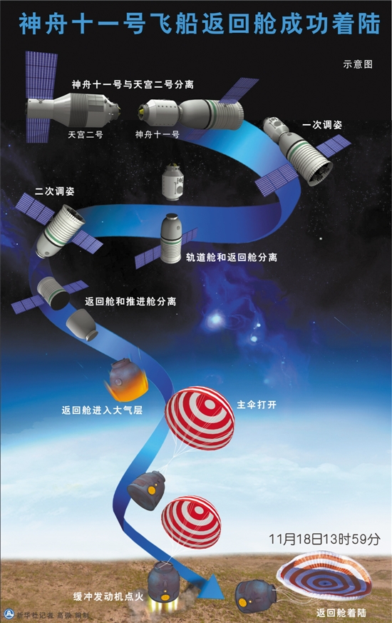 神舟十一号飞船返回舱成功着陆示意图 新华社发