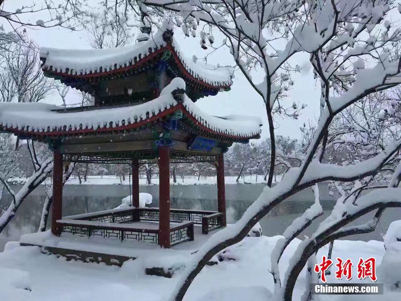 11月21日,河北承德迎来了今冬初雪,过程雪量达到暴雪,最大积雪深度为22厘米。纷纷扬扬的大雪给承德披上了洁白的外衣,世界文化遗产避暑山庄和普宁寺在银装素裹中显得格外典雅庄重。图为雪后避暑山庄美景。张帆 摄