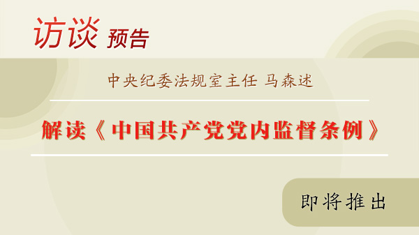 近日,中央纪委法规室主任马森述做客本网在线访谈,解读《中国共产党党内监督条例》,敬请关注。