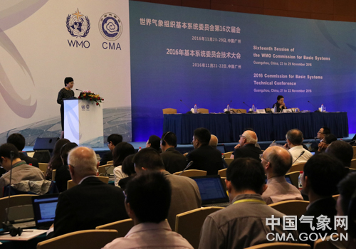 中国气象局副局长矫梅燕在CBS技术大会上作报告。陈建军 摄影