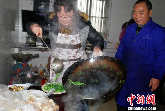 资料图:社区工作人员正在烹制爱心年夜饭。石玉成 摄